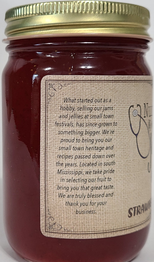 Nursing Jam in Glass Jar is tribute to our Nurses during the covid time. Strawberry Jam in Glass 16 oz Net Wt Jar Odems old time recipe Made from the Strawberries. Made in Mississippi USA